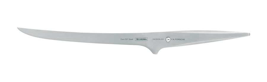 Filetovací nůž Chroma typ 301 P-07 o délce ostří 19 cm je dlouhý a ohebný nůž s úzkou čepelí. Vhodný je pro filetování ryb a masa a přípravu ovoce a zeleniny.
