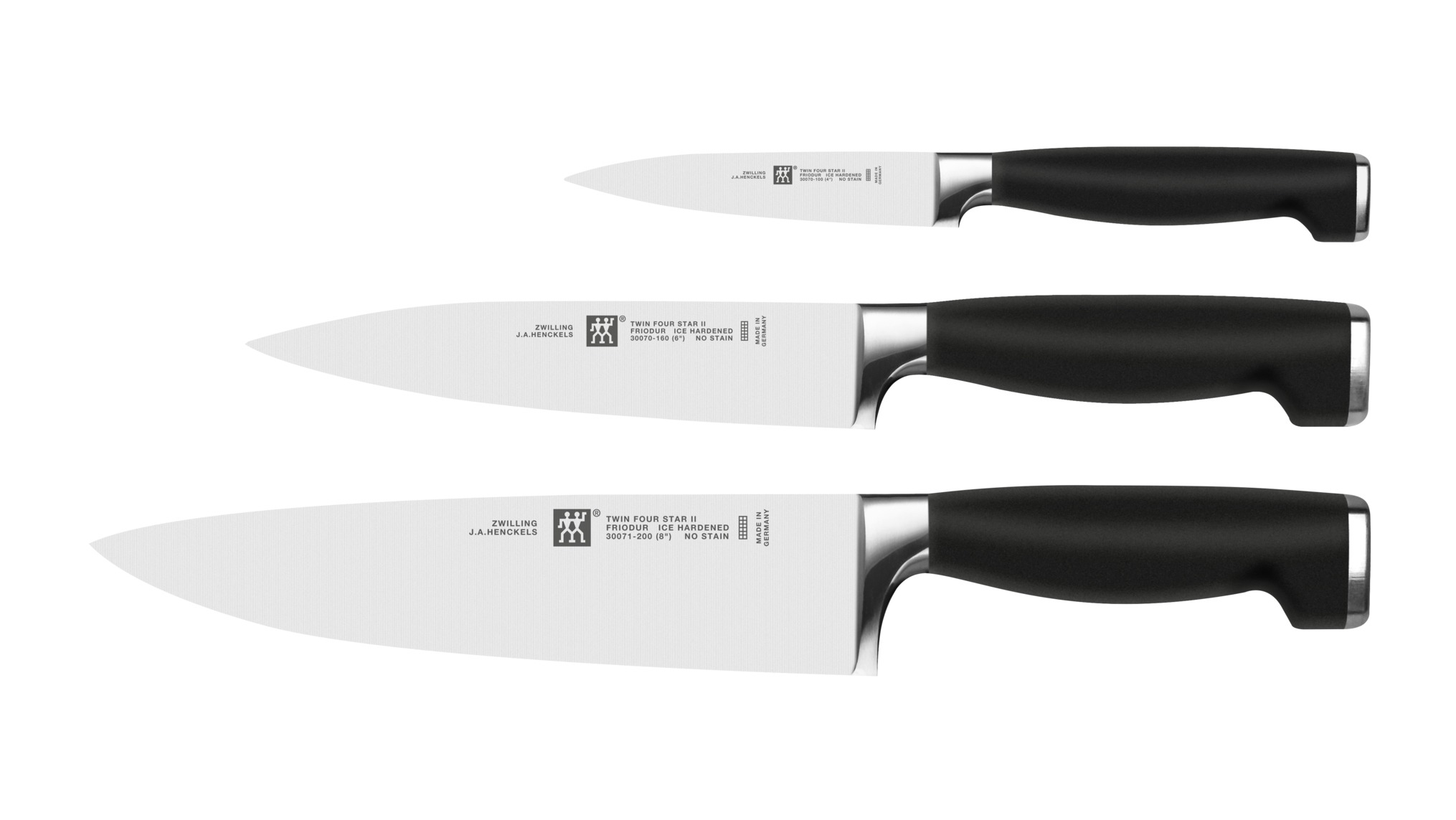 Speciální směs té nejkvalitnější oceli s optimálním poměrem chromu a uhlíku zaručuje ty nejlepší vlastnosti. Nože jsou tvrzeny technologií Friodur®- jež spočívá v trvzení mrazem, nože se tak stávají tvrdší a odolnější a více odolávají korozi. Nože jsou vyráběny z jediného kusu oceli.