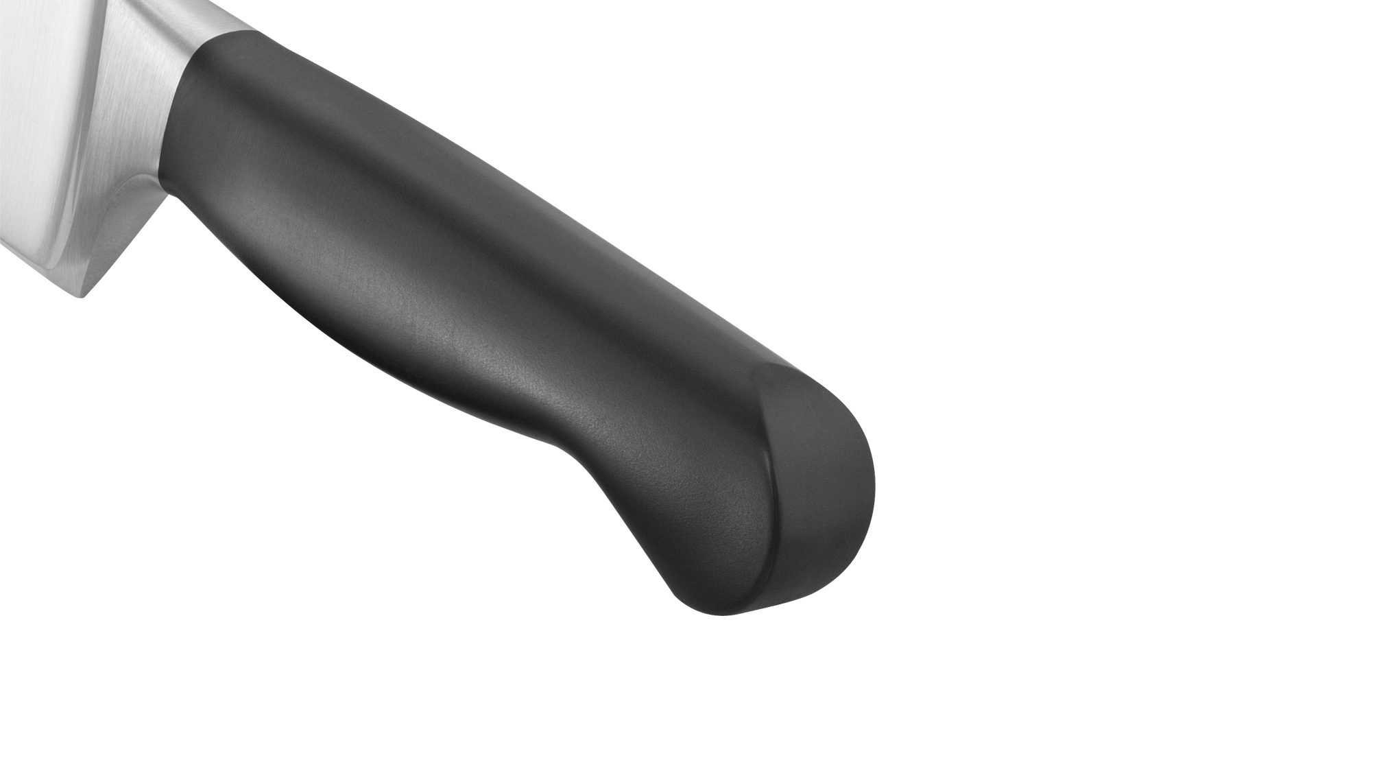 Vylepšený tvar záštity (zesílená ocelová část nože mezi čepelí a rukojetí) slouží nejen k efektivní ochraně prstů, poskytuje zároveň pevnou oporu prstům a vyvažuje celý nůž, aby používání nožů bylo pohodlnější a především bezpečnější.