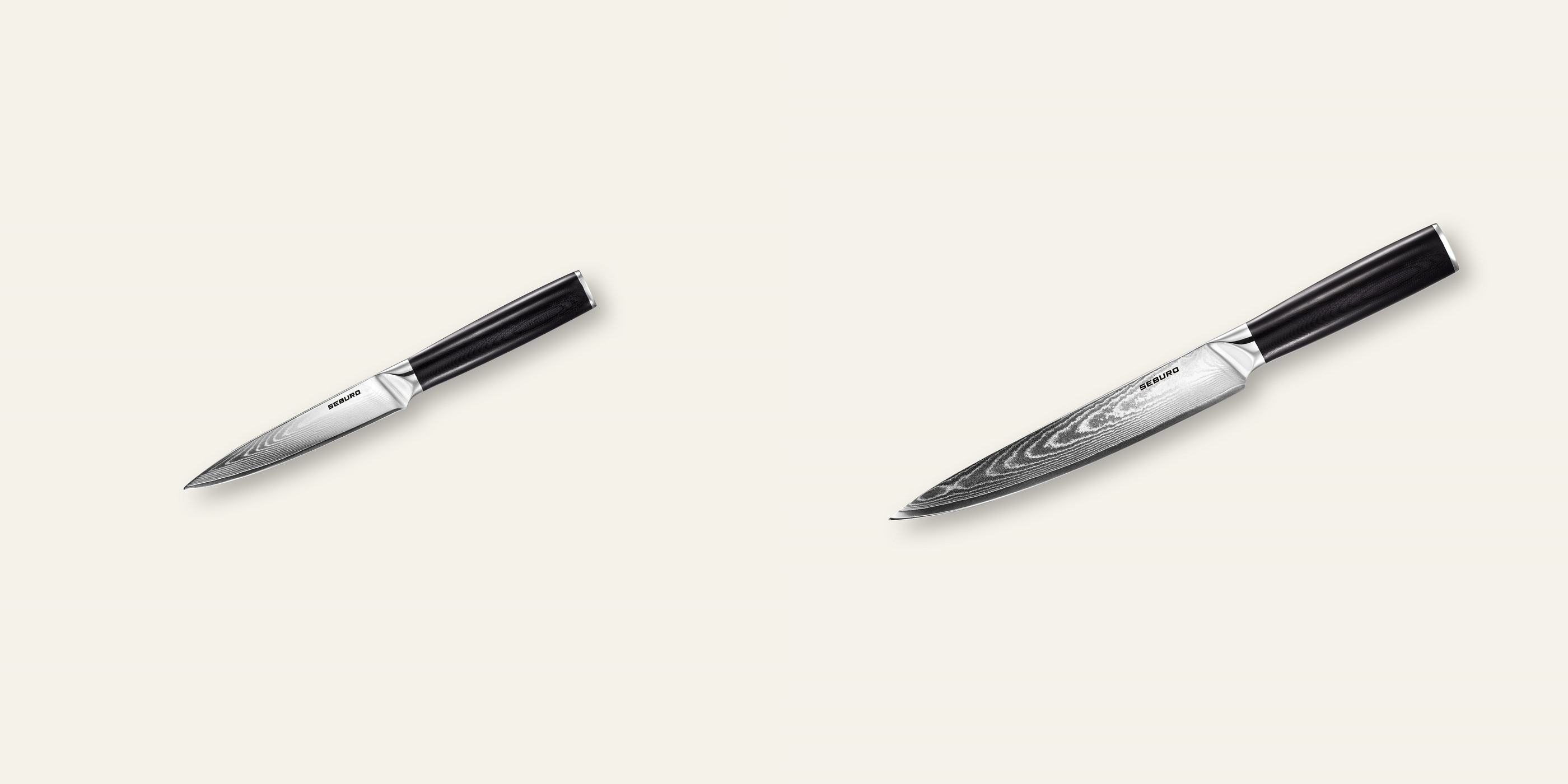 Úzká a dlouhá čepel nože umožní přesně nakrájet plátky a malé kousky ze salámu, sýra nebo masa na sendviče. Také umožní nakrájet na plátky čerstvé nebo solené ryby na výrobu sushi a sashimi. Dokonce lze nakrájet tenké plátky z velkých kusů potravin – právě díky nástroji z damašské oceli ani toto nebude problém.