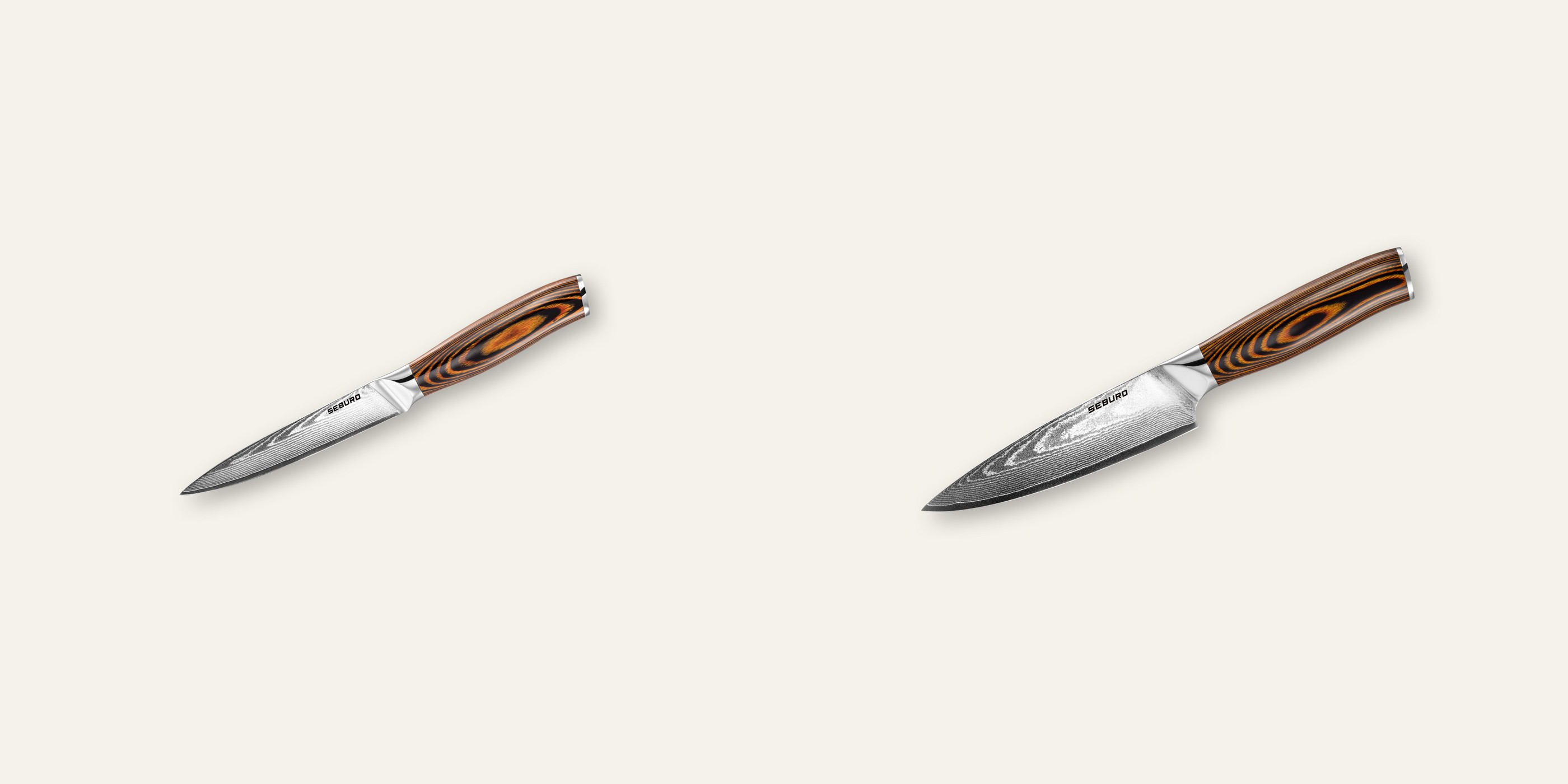 Tento univerzální nůž, dlouhý 130 mm, lze použít jak v domácnostech, tak také v profesionálních kuchyních. Střední vrstva tohoto nože je zhotovena z oceli VG-10, vyznačující se vysokým obsahem uhlíku. Díky tomu má nůž vynikající krájecí vlastnosti – značnou ostrost i kvalitní řez. Elegantní rukojeť je vyrobena z dřeva Pakka, která tak jako celý nůž opět vyniká svojí odolností. Kovová podložka je velmi hygienická a zabraňuje hromadění skvrn a nečistot mezi čepelí a rukojetí.