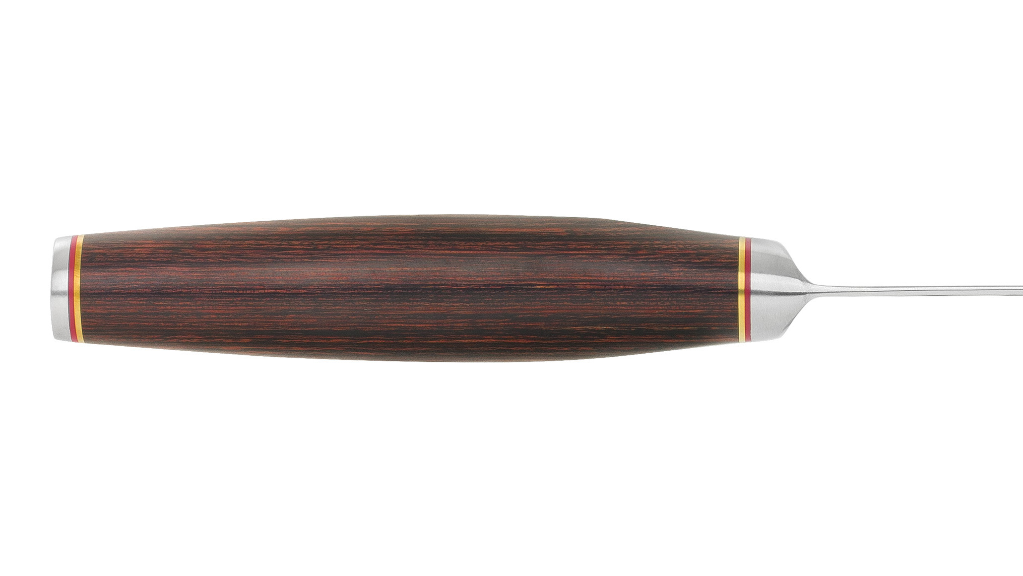Rukojeť je vyrobena tvrdého exotického dřeva pakka a přirozeně doplňuje elegantní tvar čepele. Decentní mozaika jen dokresluje mimořádnou kvalitu rukojetí. Nerezová patka s logem Miyabi vyvažuje celý nůž a dodává mu punc kvality a elegance.