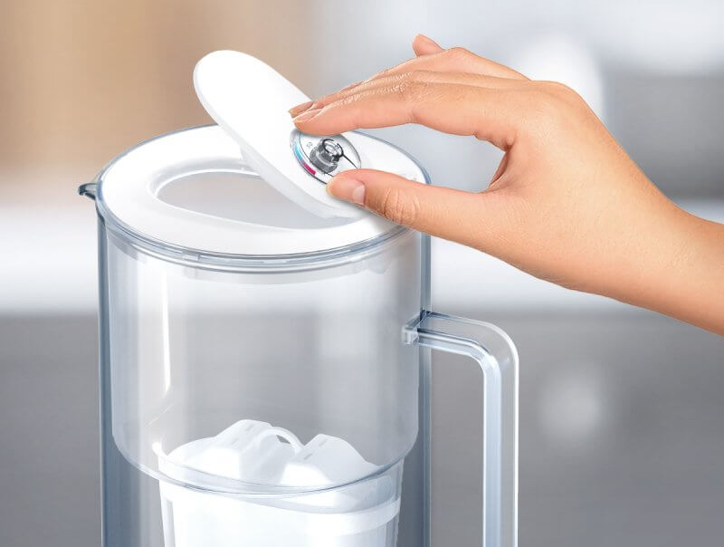 Na víku konvicí je mechanický indikátor opotřebení filtrační patrony, který informuje o včasné výměně použité patrony za novou. K provozu počítadla nejsou potřeba žádné baterie.
