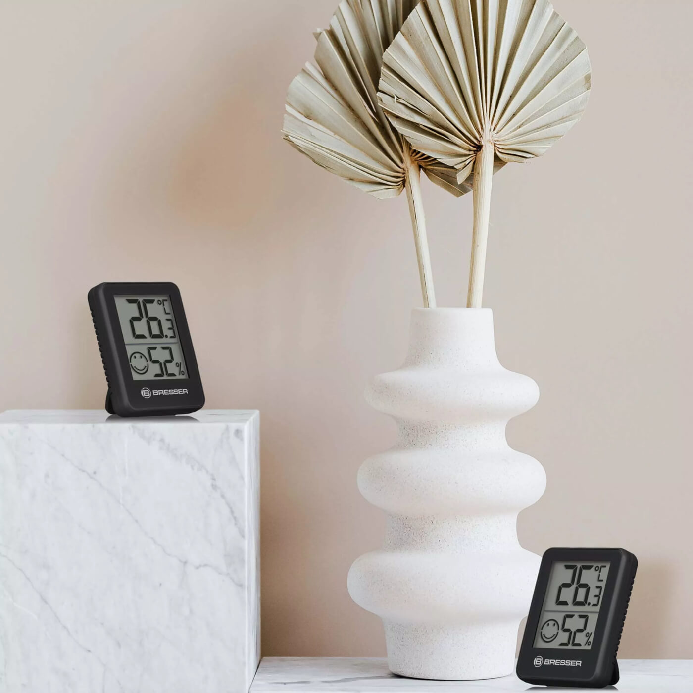Sada 3 termo-hygrometrů BRESSER ClimaTrend v černé barvě přesně měří teplotu i vlhkost a pomocí přehledného indikátoru ukazuje, zda je klima v místnosti v doporučeném rozmezí. Ideální do obýváku, ložnice i dětského pokoje.