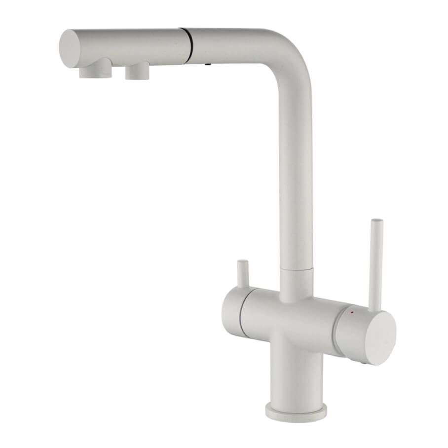 Trojcestná dřezová baterie s vytahovací koncovkou Helika Akvaduo PLUS 2683-710 (Alba, bílá)