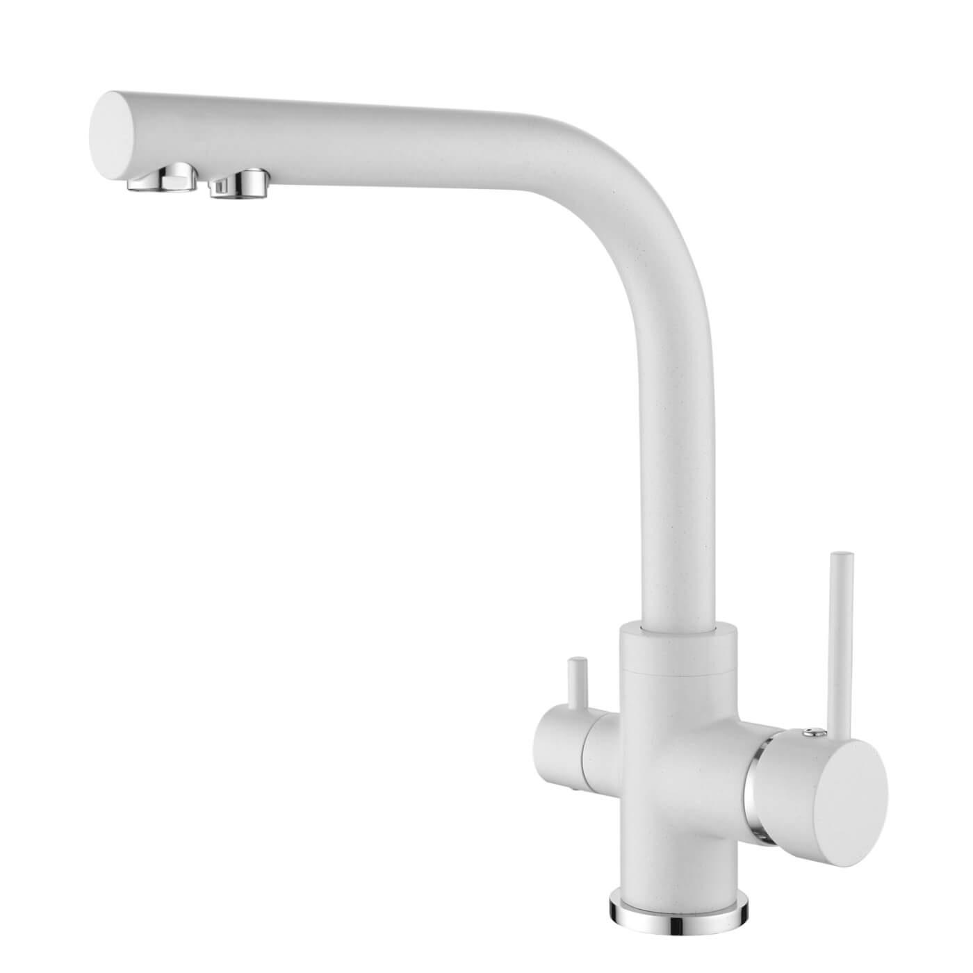 Vysoce kvalitní trojcestná baterie. Určeno pro kuchyňské linky a dřezy na separátní výdej filtrované studené vody bez nutnosti vrtání otvoru pro externí výdejní kohoutek. Použití u kterékoliv kuchyňské doúpravny pitné vody. Inovativní design a vysoká kvalita provedení výrobku vytvoří ústřední bod Vaší domácí kuchyně nebo firemní kuchyňky.