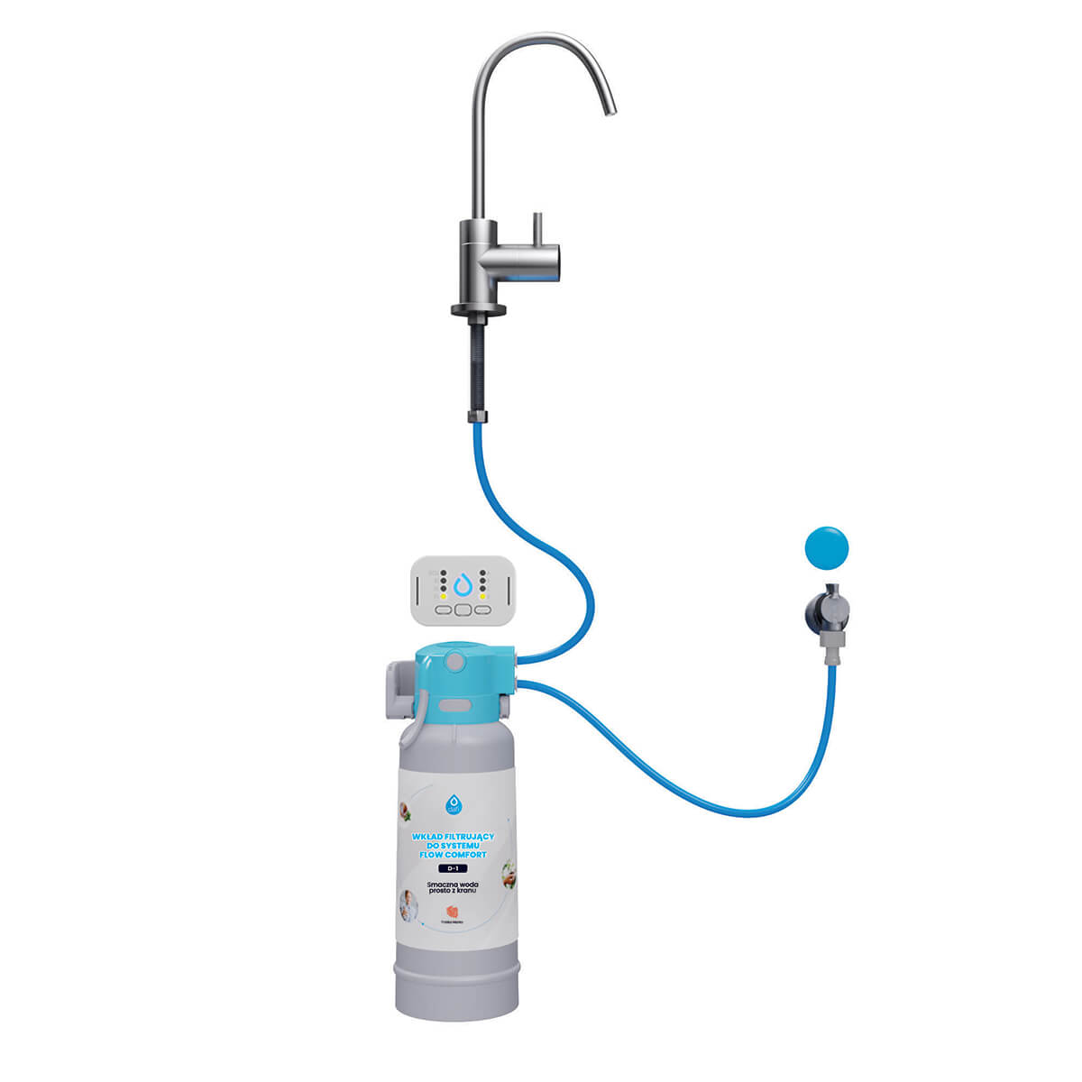 Filtrační systém Flow Comfort se vyznačuje snadnou obsluhou, kompaktní konstrukcí a dokonalou optimalizací kohoutkové vody snížením její tvrdosti a zlepšením její chuti a vůně. Systém je neinvazivní. Lze jej nainstalovat svépomocí a je to snadné.